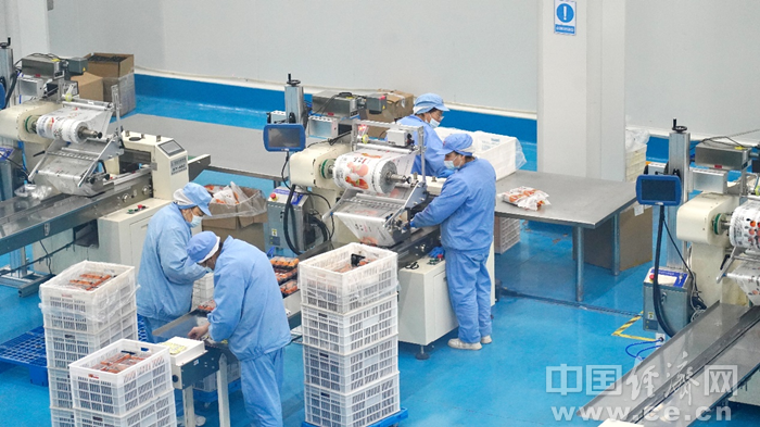 富平永辉现代农业工人正在进行冰柿(鲜食柿饼)包装 徐均坪/摄