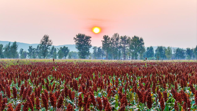 榆林市榆阳区鱼河镇的高粱喜获丰收。