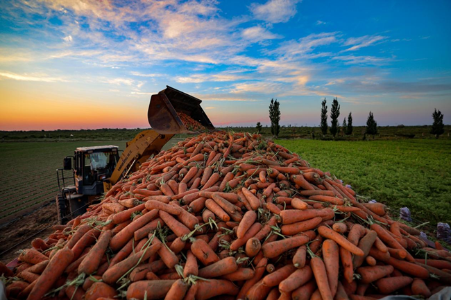 榆林市靖边县东坑镇胡萝卜蔬菜种植基地正在采收萝卜。